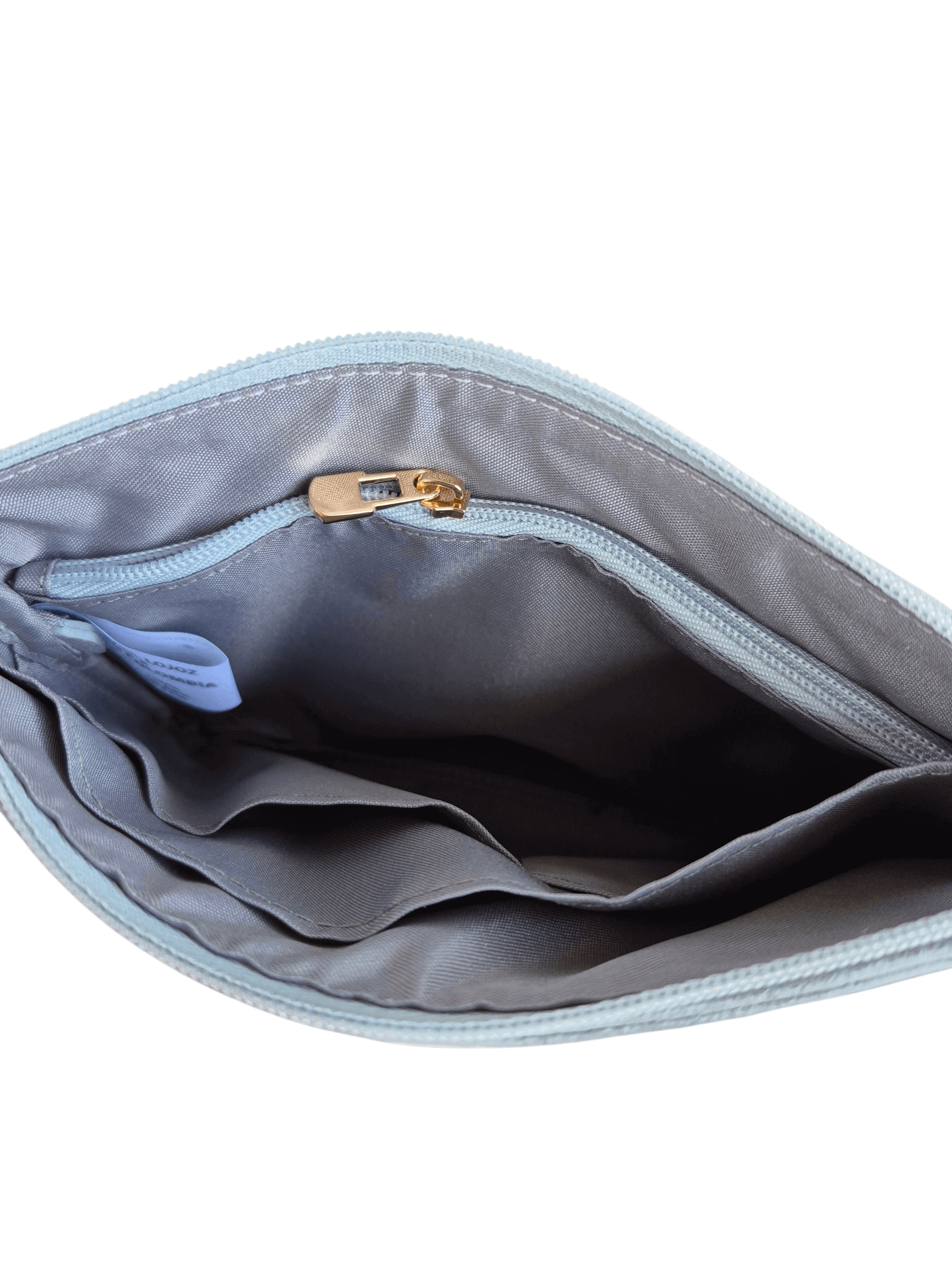 En su interior incluye bolsillo con cierre y dos compartimentos
