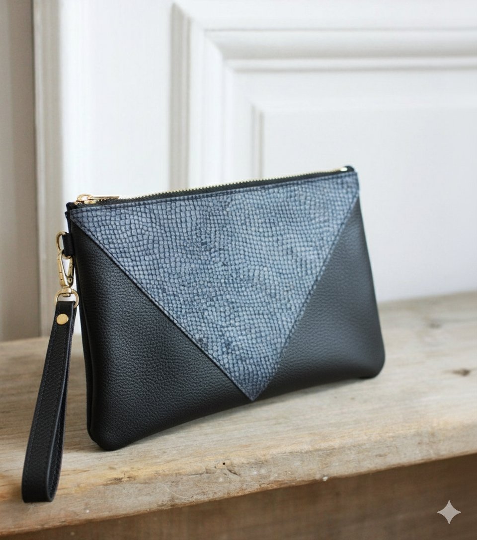 Luna es un clutch el cual puedes usar como sobre o como cosmetiquera según la ocasión. Realizada en cuero con folia y gamuza que destacan sus acabados.