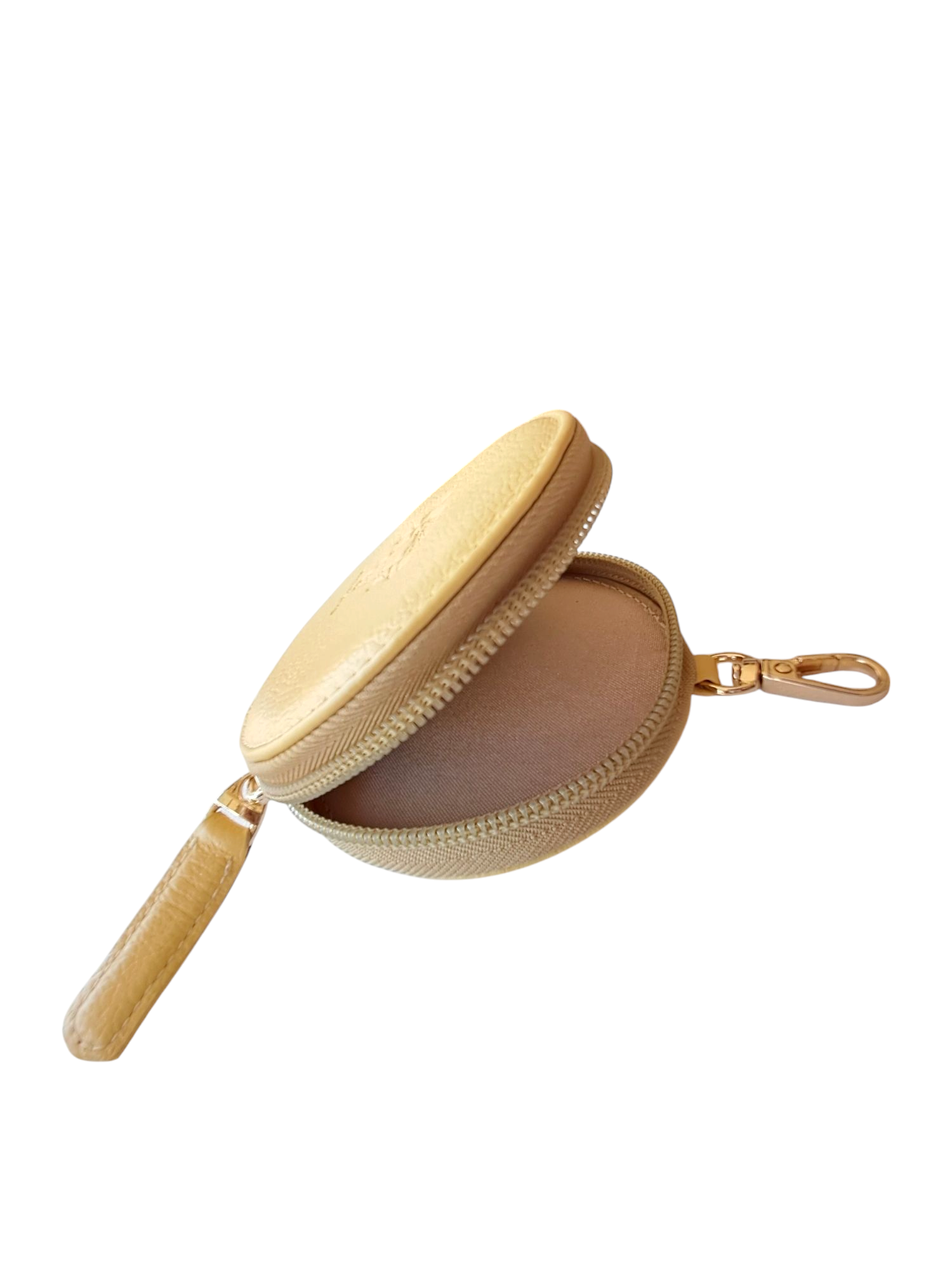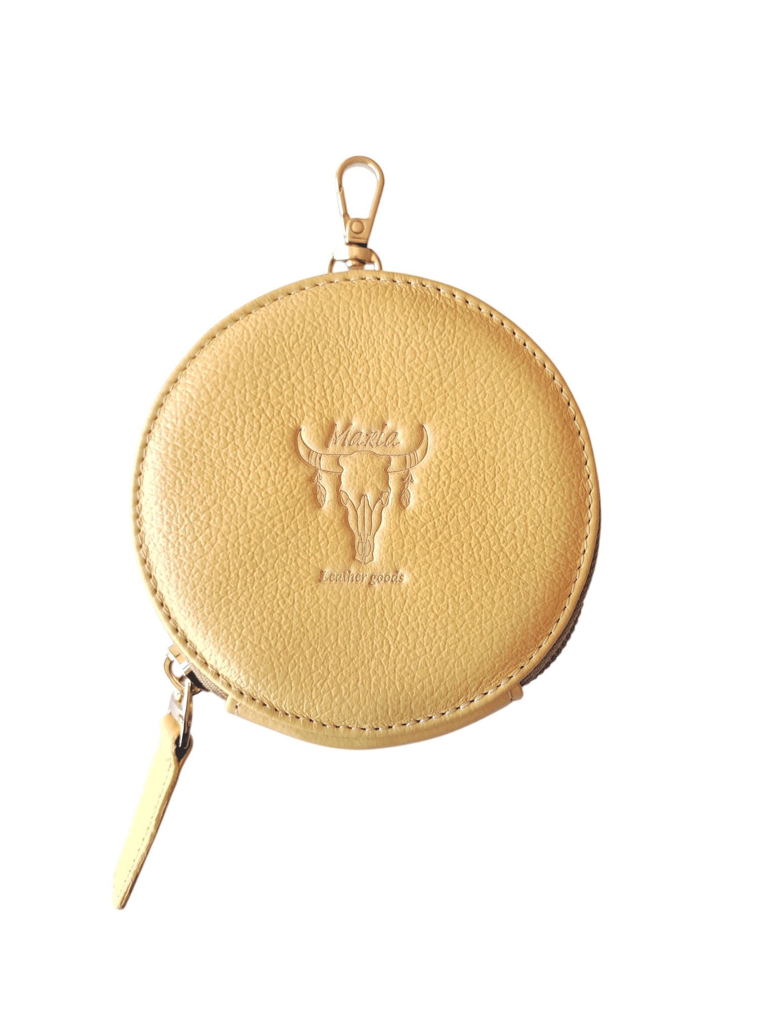 Práctico monedero redondo ideal para llevarlo en tus bolsos, pasadores del jean y darle un toque especial a tu outfit.