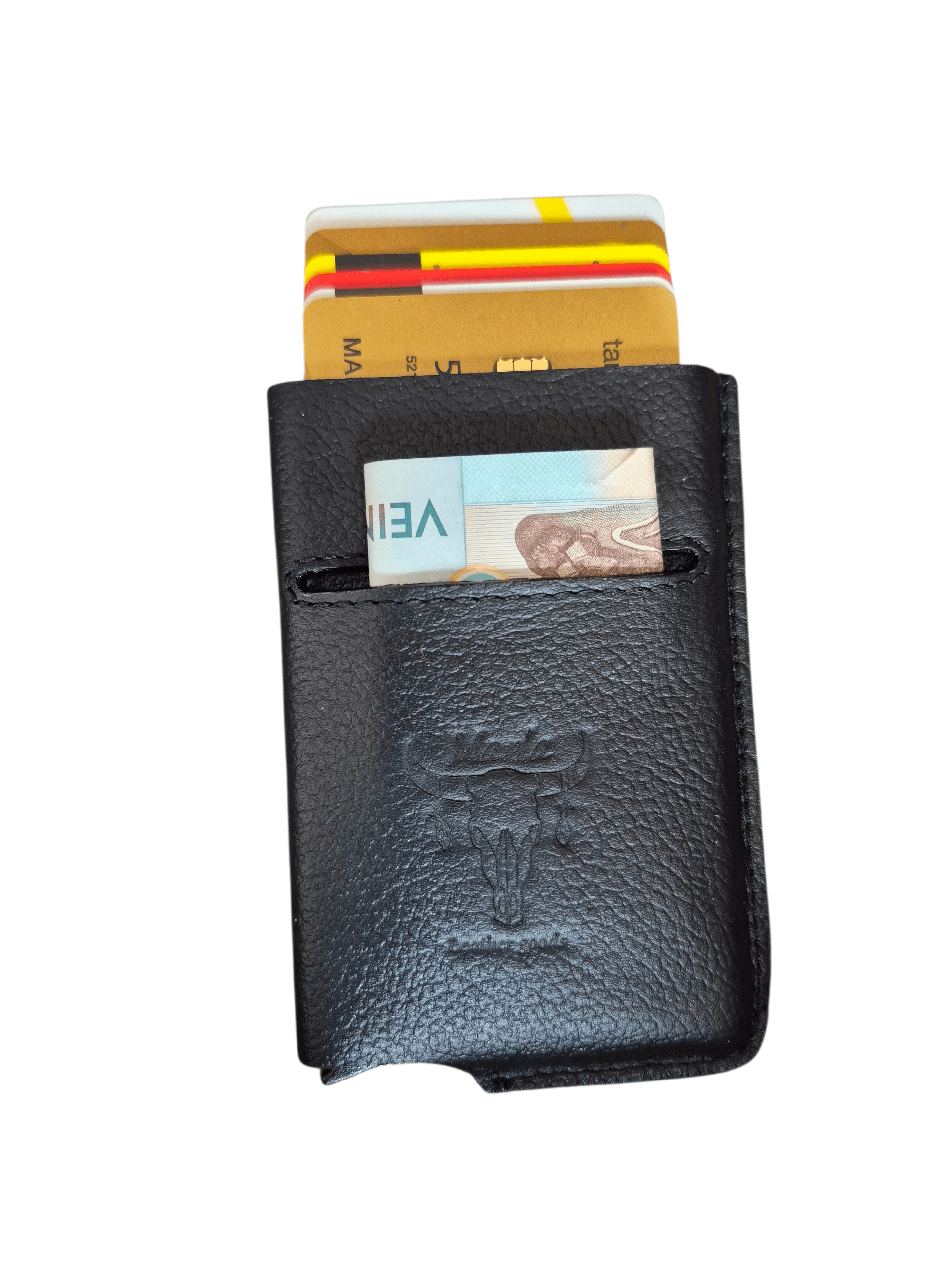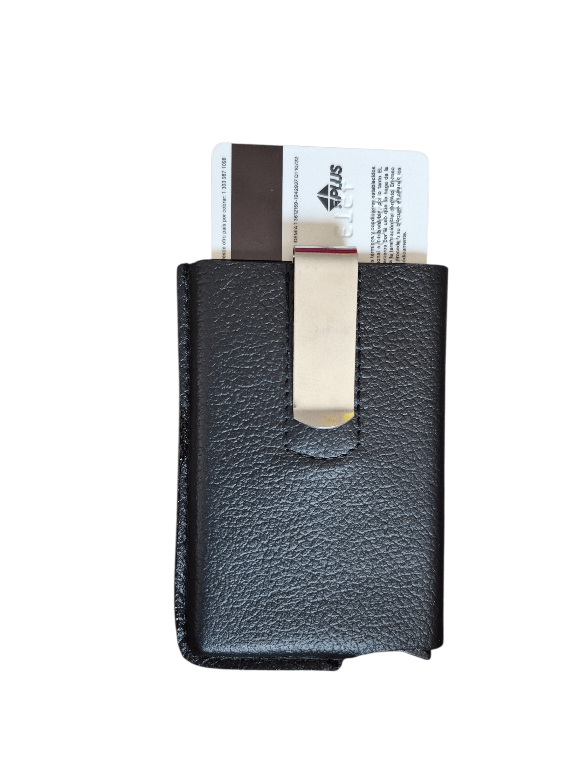 Nuestro portadocumentos es una pieza tecnológica cubierta en cuero para facilitar tu día. Su estructura de aluminio contiene un compartimento para almacenar hasta 6 tarjetas, bolsillo para billetes y gancho para asegurarlo en tu bolsillo o para usarlo como pisa billetes.